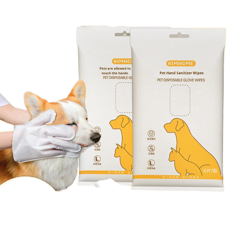 공장 OEM 일회용 장갑 목욕 도구 애완 동물 용품 친환경 부직포 드라이 클리닝 개 물티슈 15x15cm 6 팩