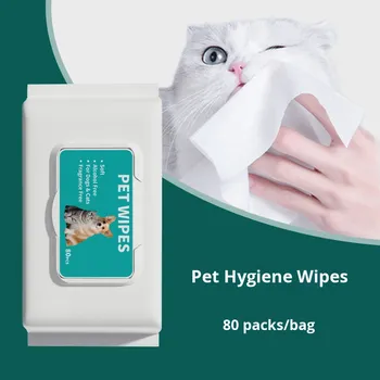 Fábrica OEM Eco-friendly Algodão Pet Toalhetes 80 Folhas 14x17cm 15x20cm Cão Descartável No-Wash Limpeza de Orelha Limpeza dos Olhos
